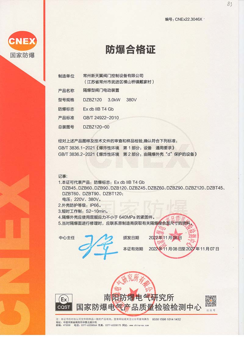 隔爆型DZB 國家強(qiáng)制性產(chǎn)品認(rèn)證BT4證書108.2