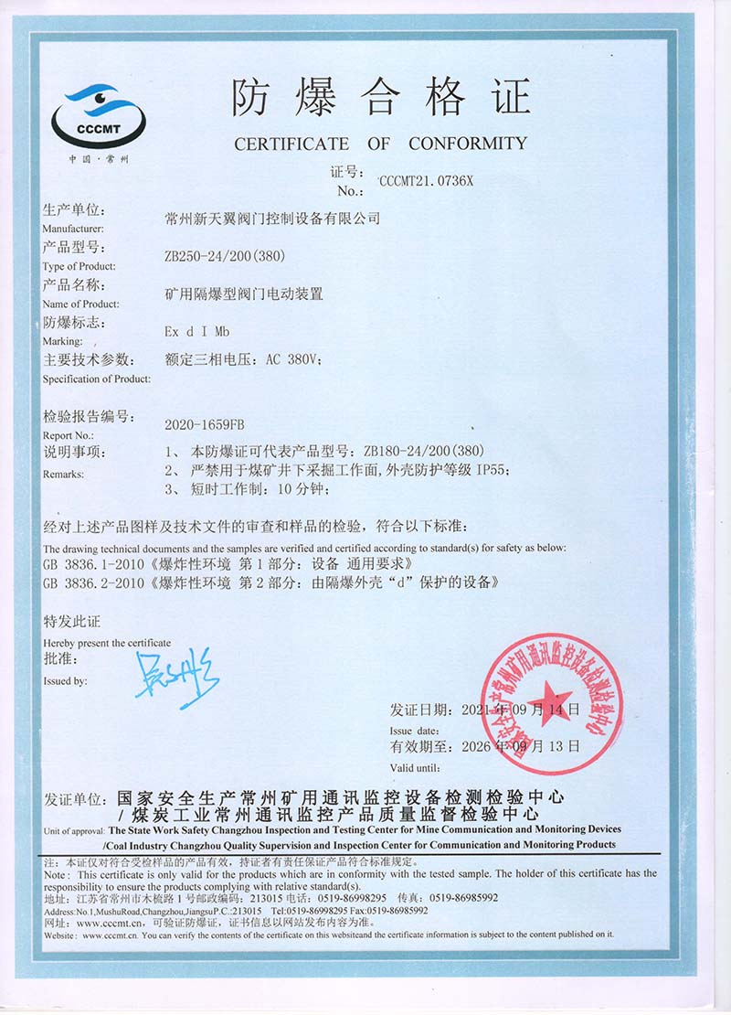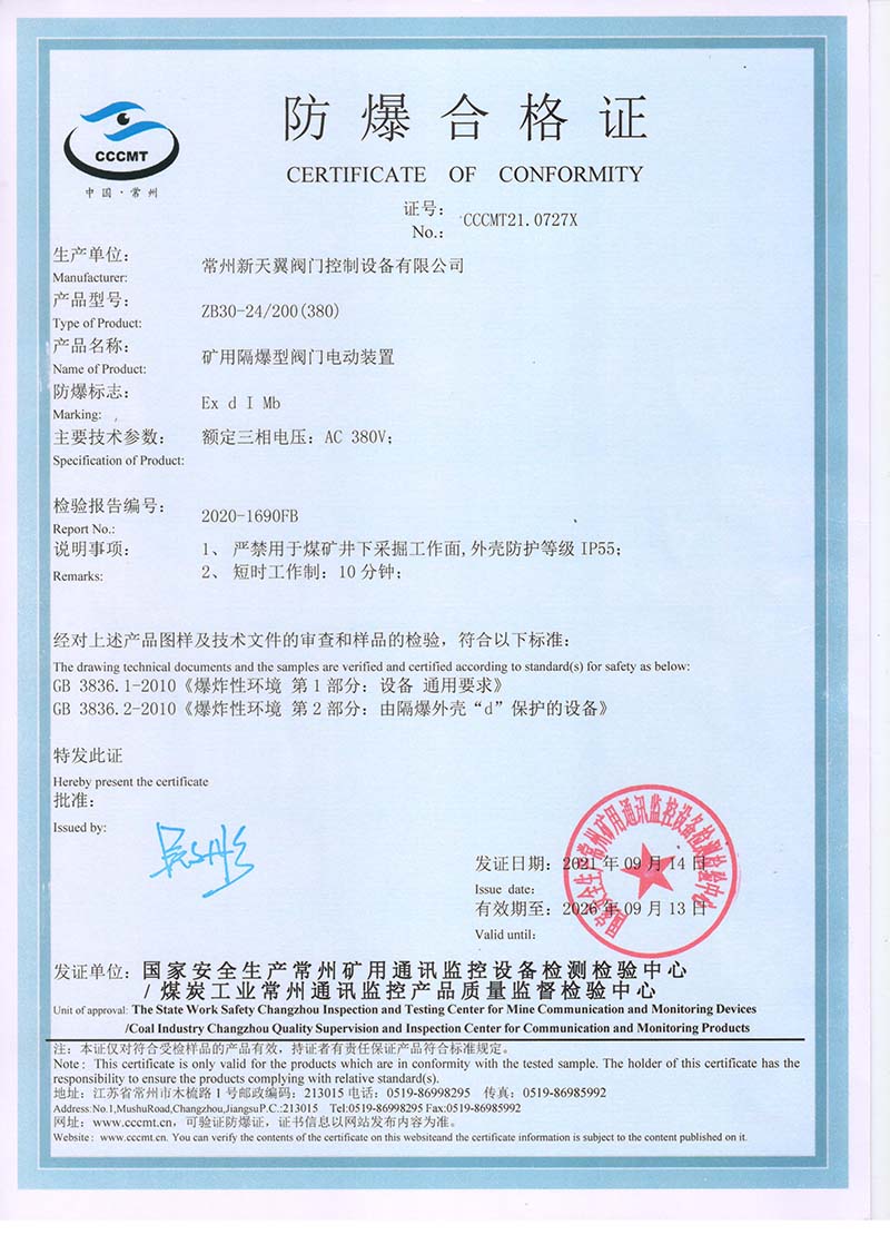 礦用產(chǎn)品安全標(biāo)志證書ZB30-24 200(380)