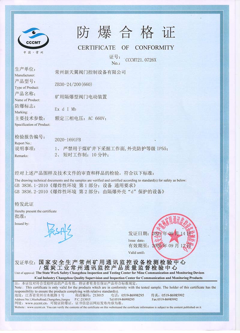 礦用產(chǎn)品安全標(biāo)志證書ZB30-24 200(660)