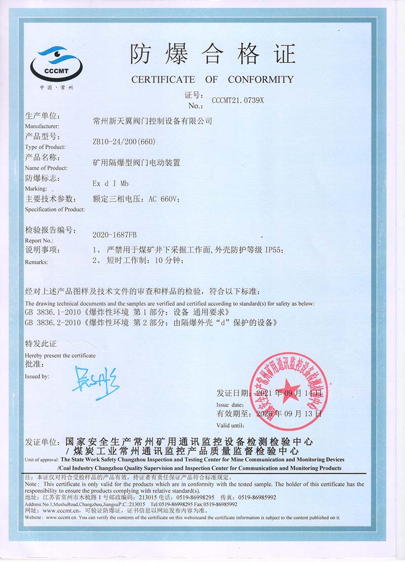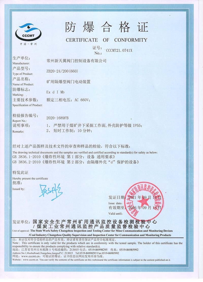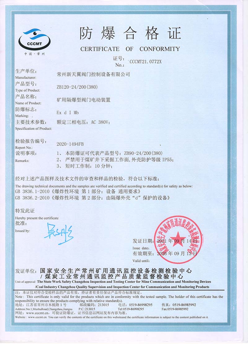 防爆Z10B Z10FB國家強(qiáng)制性產(chǎn)品認(rèn)證CT4證書109.1